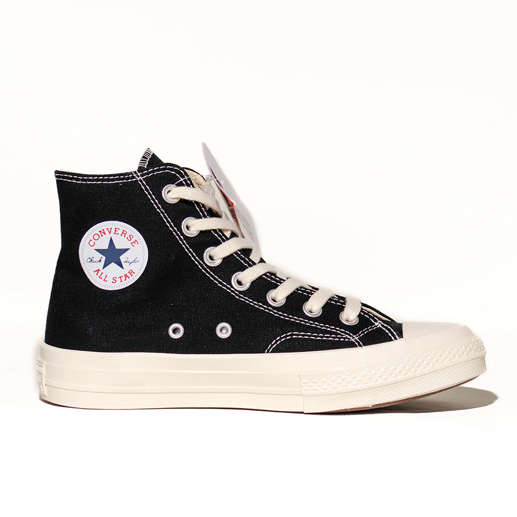"La diseñadora japonesa Rei Kawakubo es una de las diseñadoras de moda más prolíficas de todos los tiempos. Aparte de sus colecciones de Comme des Garçons, ha tenido numerosas colaboraciones con zapatillas a lo largo de los años. Una de las colaboraciones más destacadas involucra sus diferentes iteraciones de trabajo modificando y diseñando las Converse Chuck Taylor con su subsello Comme des Garçons PLAY. La primera versión de Kawakubo de sus Converse Chuck Taylors se produjo en 2009, cuando modificó el original quitando las costuras de contraste. Seis años después, en 2015, tomó las All Star Chuck 70 como modelo y creó un zapato tan querido que se ha reeditado todos los años desde entonces.Lo más inmediatamente reconocible en los zapatos de la línea PLAY de Comme des Garçons es su logotipo de corazón y ojos, originalmente concebido y creado por Filip Pagowski. Sin embargo, a diferencia de la versión original de 2009, la versión de 2015 y todas las versiones posteriores se han alejado de la filosofía minimalista original que inspiró a Kawakubo a iniciar esta línea de colaboraciones. Las Converse Chuck Taylor All-Star 70s Hi Comme des Garçons PLAY se remontan al clásico estilo Chuck Taylor de los años 70, pero con un cuello alto que abraza cómodamente los tobillos y una parte superior negra, cordones blancos y una suela y puntera blancas.Las Converse Chuck Taylor All-Star 70s Hi Comme des Garçons PLAY Black se lanzaron en marzo de 2019. Calidad G5 Importada".